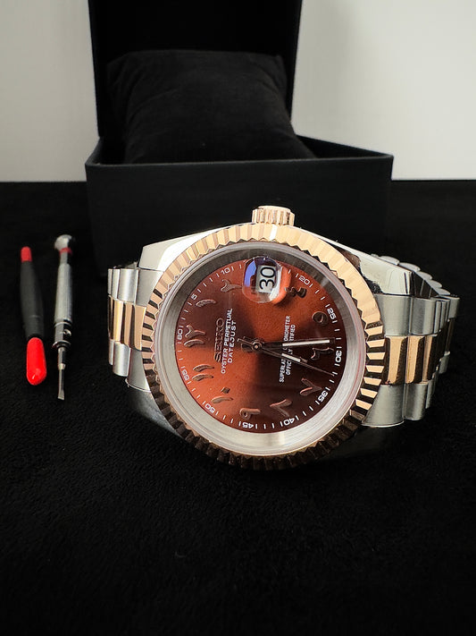 Seiko Arabic Dial Datejust | Chocolate (Two-Tone Rose Gold)